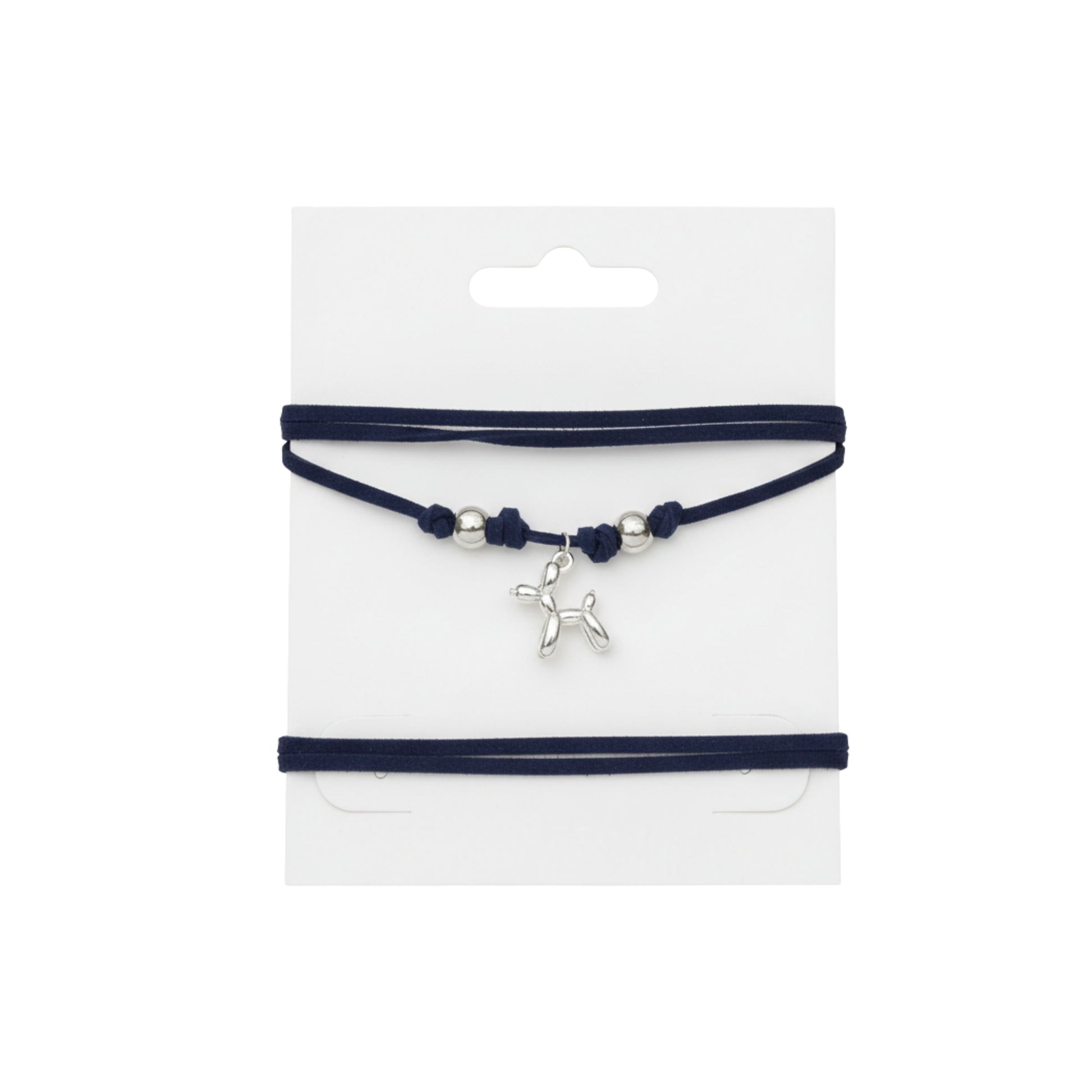 Questo choker artigianale combina eleganza e qualità, realizzato con una cordina in pelle scamosciata blu scuro, morbida al tatto e durevole nel tempo. Al centro, il charm Dog Balloon in silver, accompagnato da due perline argentate, aggiunge un tocco distintivo e raffinato. Perfetto per chi cerca un accessorio unico e resistente, capace di valorizzare ogni look con sobrietà e stile.