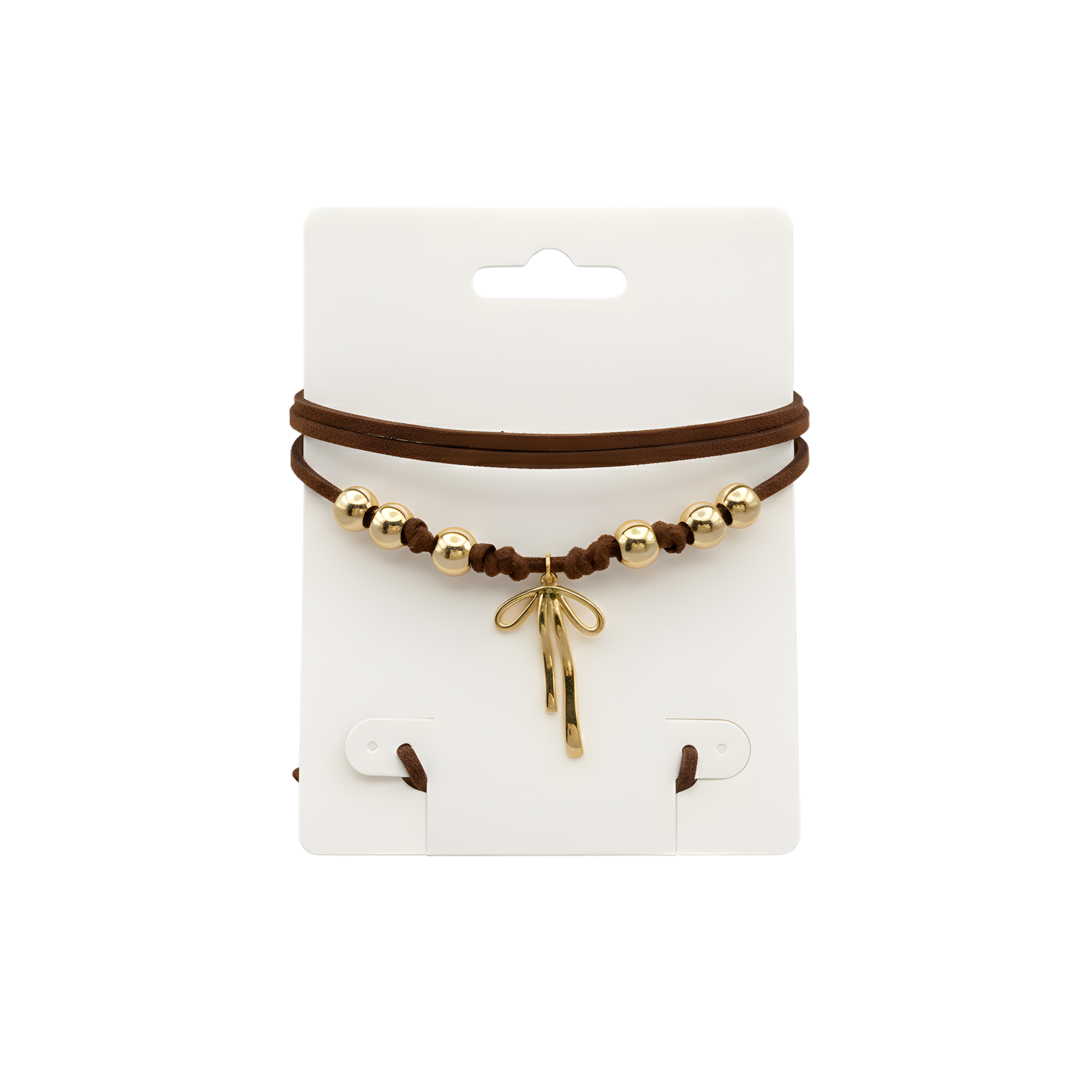 Posiziona la metà del laccio al centro del collo, quindi avvolgi il resto intorno al collo facendo il numero di giri desiderato. Puoi chiudere il fiocco davanti, di lato o dietro, creando ogni volta un look unico e originale. Le perline dorate si spostano leggermente con la chiusura, aggiungendo movimento e un tocco dinamico che cattura lo sguardo.